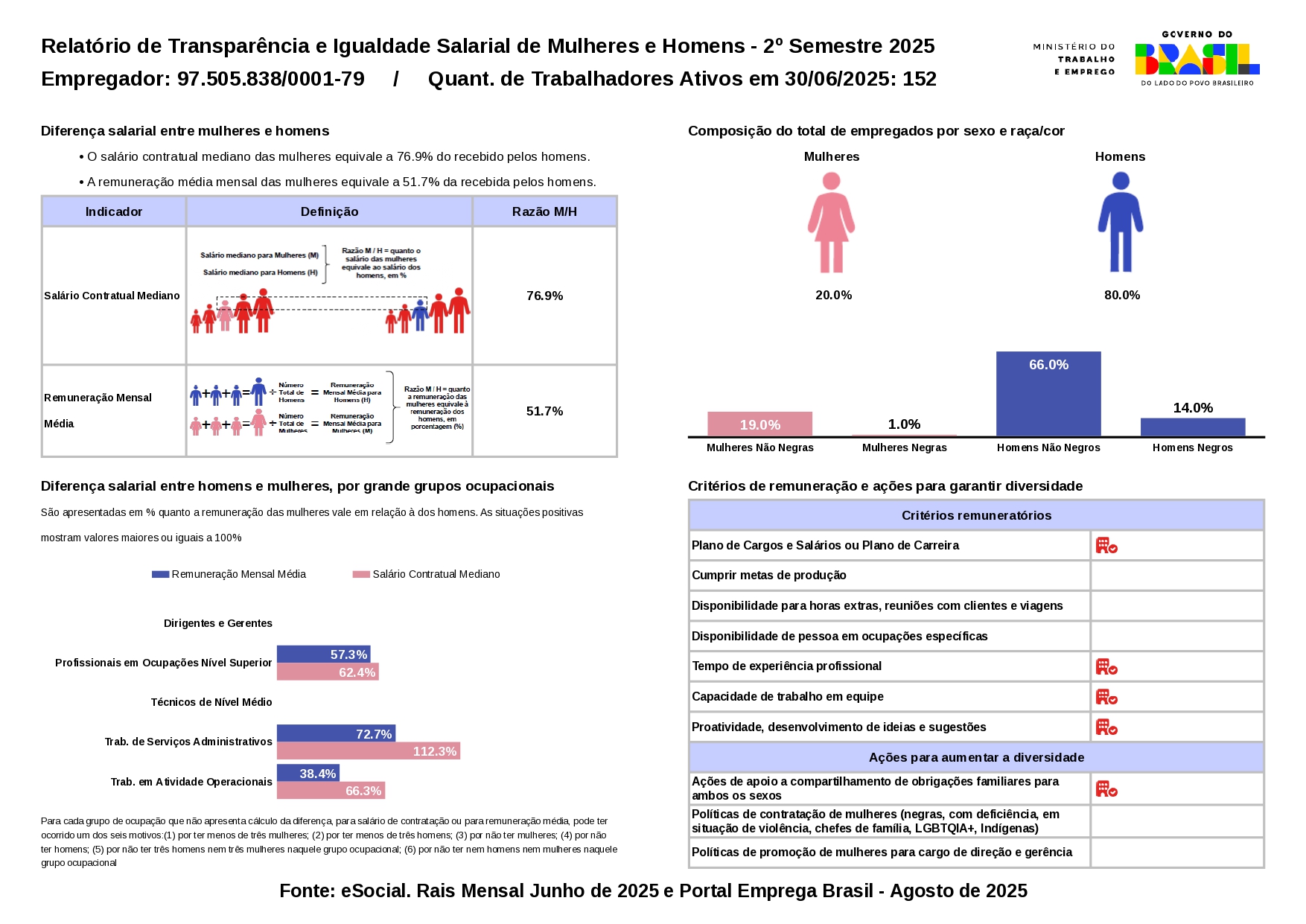 Atendendo a Lei nº 14.611 de 3 de Julho de 2023, estamos divulgando o relatório de transparência e igualdade salarial de mulheres e homens 2º semestre de 2025.